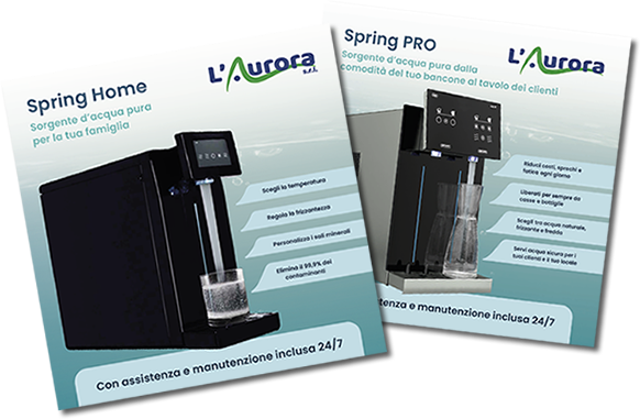 Consulta i nostri cataloghi per esplorare le soluzioni dedicate all’acqua: erogatori, depuratori e sistemi professionali per la casa, l’ufficio e il settore Ho.Re.Ca.